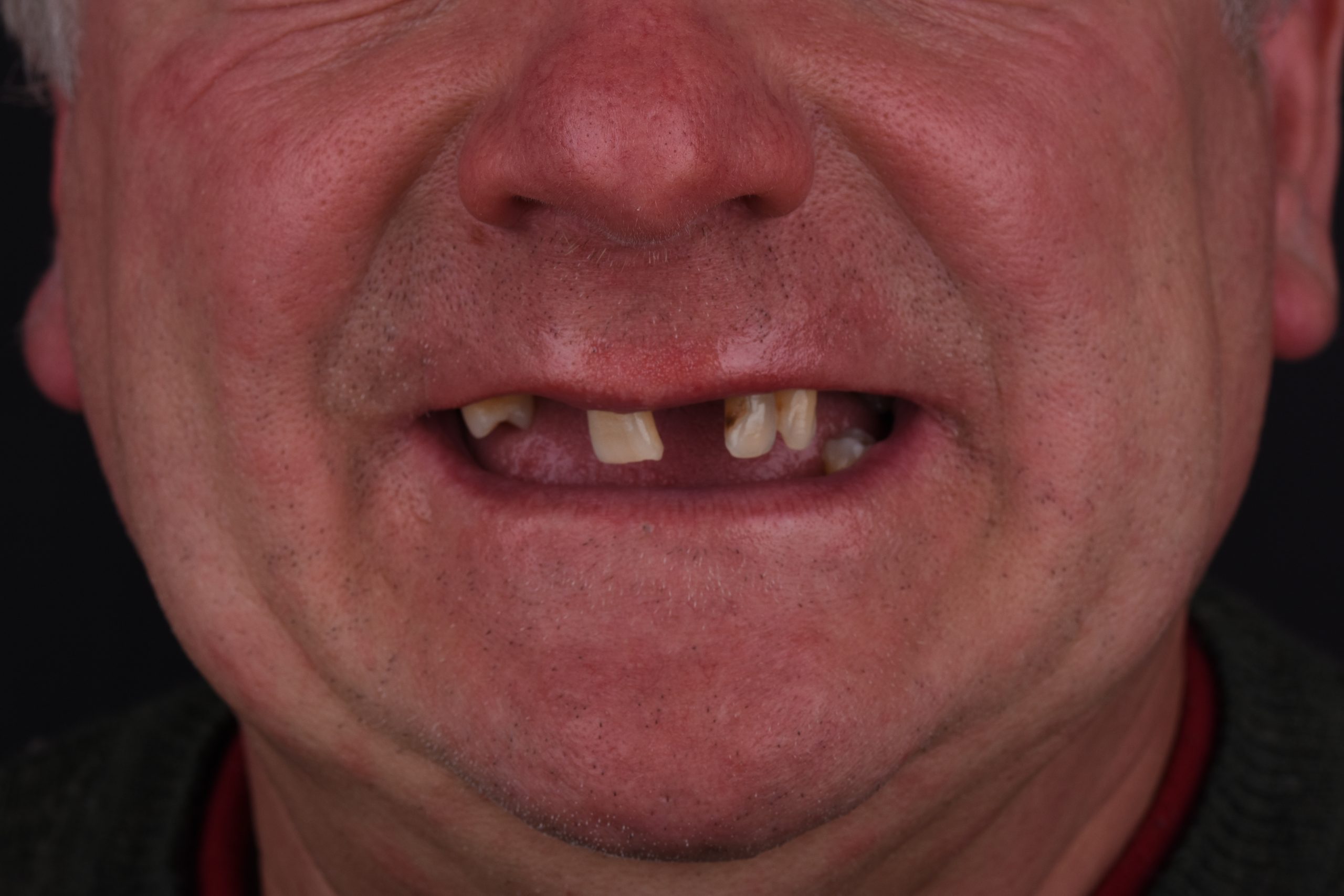 Este paciente chegou à Clínica Raiz com queixas severas de dificuldade mastigatória, devido à falta de dentes e mobilidade dentária acentuada. A situação não só limitava a alimentação, como afetava a sua confiança, bem-estar e expressão facial.