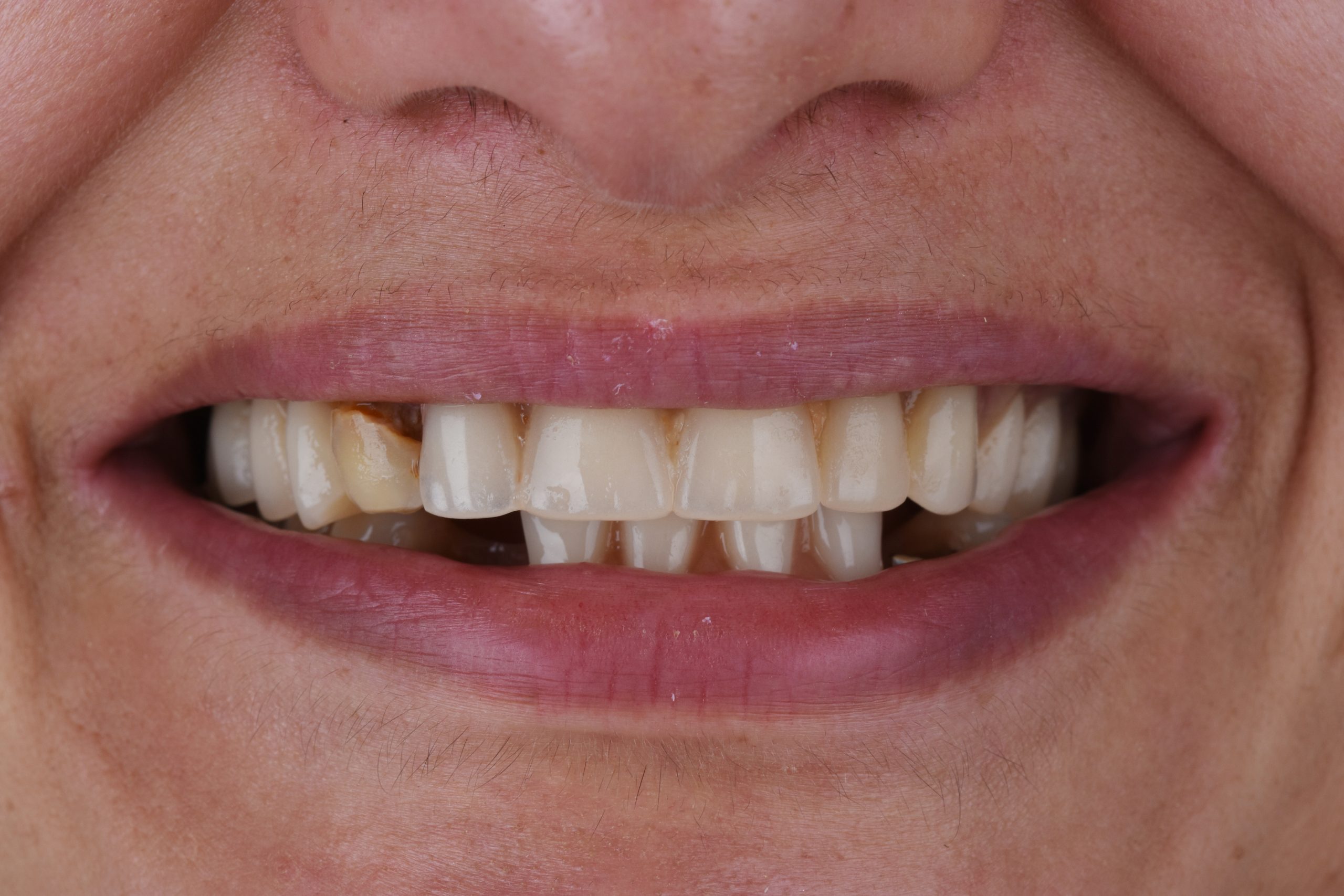 Neste caso, realizamos o tratamento de “dentes fixos em um dia” que permitiu devolver à paciente a confiança para voltar a sorrir e a mastigar.